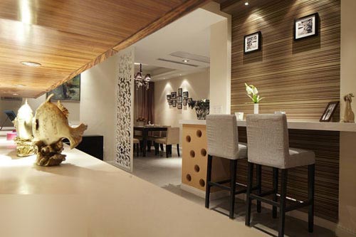 玄關(guān)柜,屏風(fēng)后是餐廳。