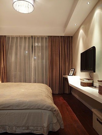 一進(jìn)房間,整個空間給人一種清爽不失高貴的感覺。客廳區(qū)域墻面沒有做過多的裝飾,墻面采用米黃色的油漆,客廳的吊頂也沒有做的太復(fù)雜只是在墻的邊角走了一圈邊,做成上下疊級的吊頂,并配上水晶吊燈,奶油色的布藝沙發(fā)搭配深色靠墊,既簡單又富有現(xiàn)代感。一個漂亮的落地?zé)粽樟琳麄€房間又起到了很好的裝飾做用,一舉兩得。沙發(fā)背景墻沒必要做的復(fù)雜,掛上兩幅簡單油畫,現(xiàn)代感極強。