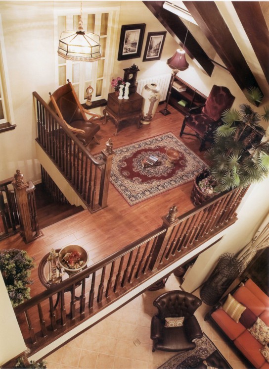 本案為美式風(fēng)格,在這個(gè)美式風(fēng)格的住宅環(huán)境里,設(shè)計(jì)師均衡考慮各個(gè)房間,并對項(xiàng)目進(jìn)行整體處理,旨在保證各個(gè)房間之間的流暢感,以盡量避免出現(xiàn)不協(xié)調(diào)的地方。首先,借用建筑坡屋頂?shù)某叱叨?,將原建筑兩層?fù)式構(gòu)架調(diào)整為三層,使空間更具層次感。其次,在格局的布控上講究對人性的極大尊重,具有獨(dú)立的會客廳、咖啡室、雪茄室、兒童游樂區(qū)和一間超過30平的主衛(wèi),使得室內(nèi)除了給人極大的心理和視覺滿足感外,還兼具舒適性。這些在普通住宅不具備的功能區(qū)域,適度地張揚(yáng)了主人的個(gè)性,同時(shí)也銘刻著主人事業(yè)的成功。