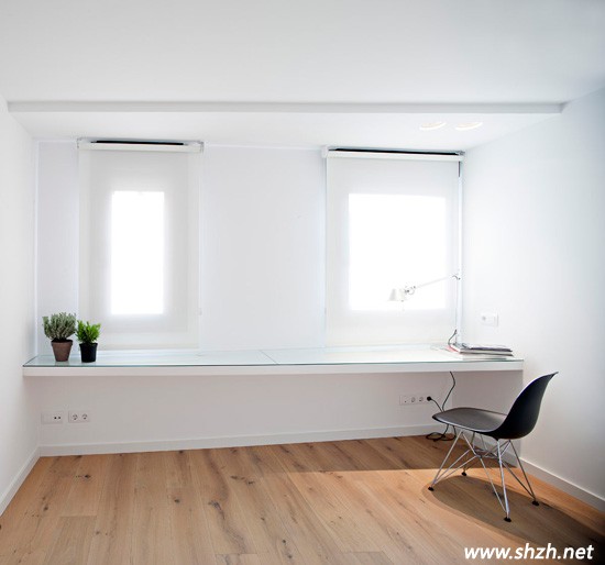 這里就是小小的工作室了,是針對現(xiàn)代80后而設(shè)計(jì)的哦!正直年輕,工作事業(yè)才是最重要的,因此,在這里設(shè)計(jì)出切合實(shí)際的符合業(yè)主需求的工作室,純白色的空間,使室內(nèi)變得特別的寬敞明亮,而白色的隔板做成書桌,桌上沒有過多的裝飾,這樣更能讓人擁有安靜的工作環(huán)境,而兩盆綠植,則帶來了自然清新的味道,工作累的時(shí)候,還能享受到到大自然的味道,非常愜意。