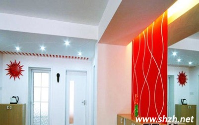 此圖的玄關(guān)裝修并沒有使用大面的玻璃然后加上一些彩繪點(diǎn)飾。而是采用單一的紫色彩繪玻璃連成串當(dāng)作玄關(guān)。與客廳的簡(jiǎn)約裝修風(fēng)格一致。但是采用紫色室內(nèi)彌漫著永恒的愛的真情浪漫。