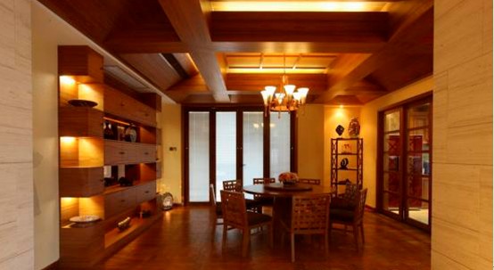 玄關設置實木屏風與簡樸的石材相結合,不僅符合中國傳統(tǒng)玄學理念,又豐富了空間的層次??蛷d地面戶外木地板延伸至花園的水池、飯廳的門均采用折疊式鋁包實木門、視野、采光十分開闊,使室內(nèi)空間更好地與室外水池、園林相呼應。東南亞獨特、優(yōu)美的藝術擺設,更加襯托了主人的愛好和品位。滿足業(yè)主提出的舒適、休閑的要求。