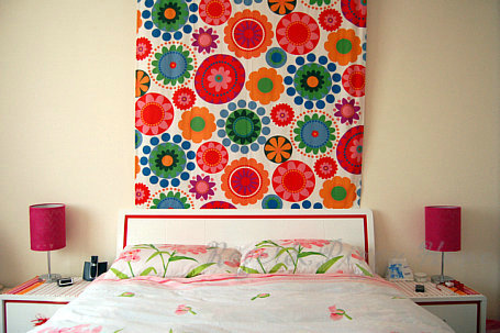 較小的空間里太過艷麗的主色調(diào)會讓空間產(chǎn)生窒息感,穿插的色彩更能突顯喜慶的本色。