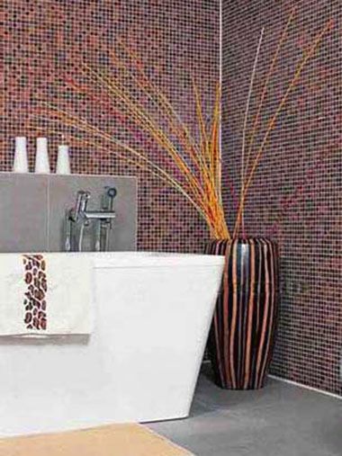 棕色給人一種沉穩(wěn)、高貴之感,大面積的棕色馬賽克和造型硬朗的浴具搭配,營造出平穩(wěn)卻不乏生動的空間。以下面的例子為榜樣,現(xiàn)在就拆解棕調(diào)衛(wèi)浴的打造招數(shù)!