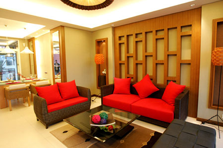 中式家居風(fēng)范與傳統(tǒng)文化的審美意蘊(yùn)。墻面沒(méi)有過(guò)多的修飾,只用白色乳膠漆進(jìn)行粉刷,地面采用了白色的石材,家具則以雕刻講究、造型典雅的木質(zhì)家具為主,配以紅色的靠墊、坐墊烘托出了居室的氛圍,表現(xiàn)了古典家具的內(nèi)涵。