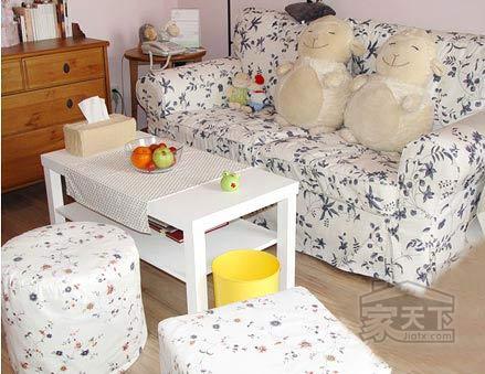 再小的家也不能沒有溫馨的氛圍,何況是婚房呢,絕對不能虧待自己,一看這對新人就是童心未泯,兩個大玩偶著實可愛,白色碎花沙發(fā)套和凳子很田園風(fēng)潮,2009年田園風(fēng)格家居仍然占有一席之地。