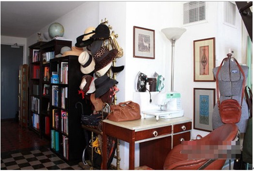 進(jìn)門遍是滿墻的書籍,三個(gè)高度不一的書架擺放成梯形,增加室內(nèi)的立體線條。加上一旁衣帽架的設(shè)計(jì),掛滿各式各樣的帽子,讓學(xué)習(xí)的地方變的溫馨起來(lái),既能作為收納又很好的充填了房間的空隙。