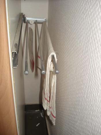 操作臺面和隔板下面的空間安裝掛桿,可以掛置大量廚房用具。