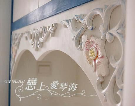雕花是在木材店里買的花邊,15元一個(gè),貼到柜子上,