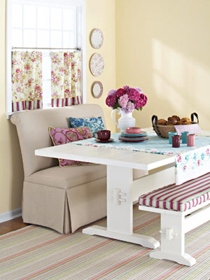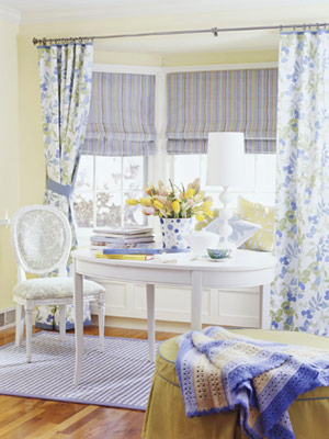 這個色彩繽紛的小休閑區(qū)是不是讓你心情大好?仔細看一看,其實空間本身的色調(diào)很中性化,用了淺褐色的家具和淡雅的黃色墻面。裝飾的重點在于那些表面布滿了花紋的的小配飾,天藍、紫紅、粉紅、淺綠……讓整個空間格調(diào)煥然一新,充滿女人味。
