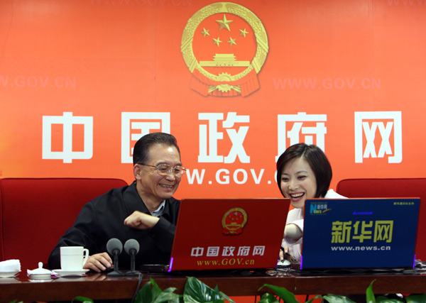 2月28日,**中央*****、國務(wù)院總理***在中國**網(wǎng)與網(wǎng)友在線交流。(新華社記者 姚大偉 攝)