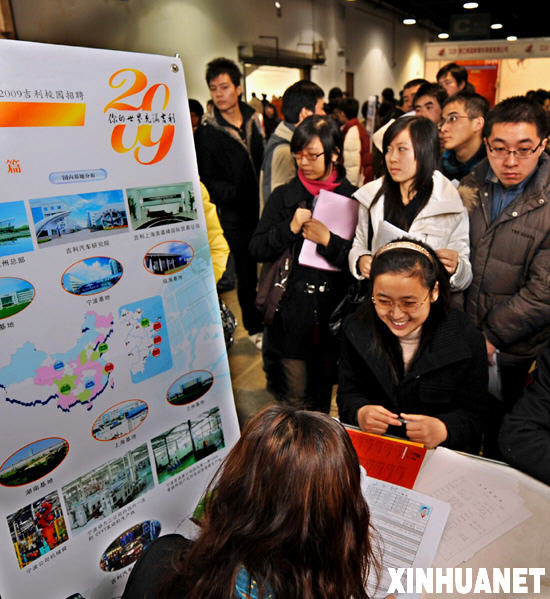 “沒就業(yè)先失業(yè)咋辦?”“沒經(jīng)驗就沒工作咋辦?”“沒資本咋創(chuàng)業(yè)?”“求職心態(tài)怎樣才算夠低?”金融危機形勢下,這一連串問題,壓得610多萬2009年的高校畢業(yè)生們喘不過氣來。全國兩會開幕在即,代表、委員們紛紛答疑解惑,為大學(xué)生就業(yè)開“良方”。 這是1月13日,一位女大學(xué)生(前坐者)在“杭州市2009屆高校畢業(yè)生就業(yè)招聘大會”上向一家民營汽車企業(yè)的招聘人員介紹自己的專業(yè)特長。新華社記者 譚進 攝