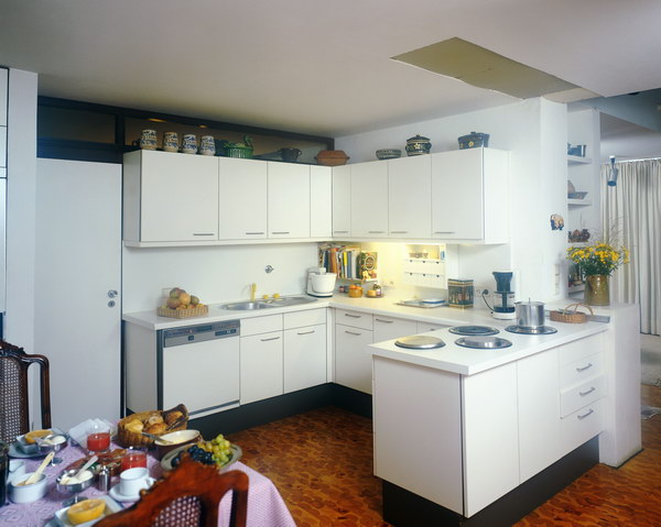 色彩心理學(xué)研究表明,藍(lán)色系是一種令人產(chǎn)生無(wú)限遐想的色彩,而橙紅的色彩讓廚房鮮艷明亮。藍(lán)色與橙紅的組合,在廚房里創(chuàng)造出一種前所未有的氣息及現(xiàn)代時(shí)尚氣息。紅色熱情奔放如火,白色的清潔與無(wú)瑕令人自由。紅白大膽搭配,既增加了房間的亮度,也使廚房充滿了幻想,很適合新婚夫婦。而白色與黑色強(qiáng)烈對(duì)比中卻可制造出一種沉穩(wěn)的效果。