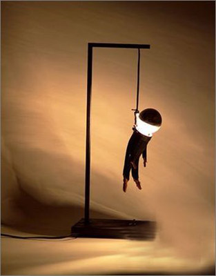 把臺燈做成一個(gè)上吊的小人。喜歡恐怖片的人,不妨試試