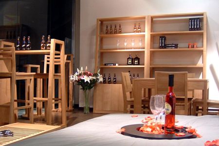 餐桌式:將餐桌與酒吧結(jié)合,使酒吧兼作餐桌。一般可以設(shè)計(jì)成“T”型或“L”型,吧臺(tái)可分為上下兩層。下層挑出一部分,做成折疊式,支起時(shí)形成小餐桌,供數(shù)人用餐,放下時(shí)就成為酒吧,可減少使用面積,支架可利用吧柜的門窗。吧柜設(shè)計(jì)得稍大一些,用以存放酒具及餐具。由于一臺(tái)多用,占地少,尤適宜無餐廳的小面積居室。