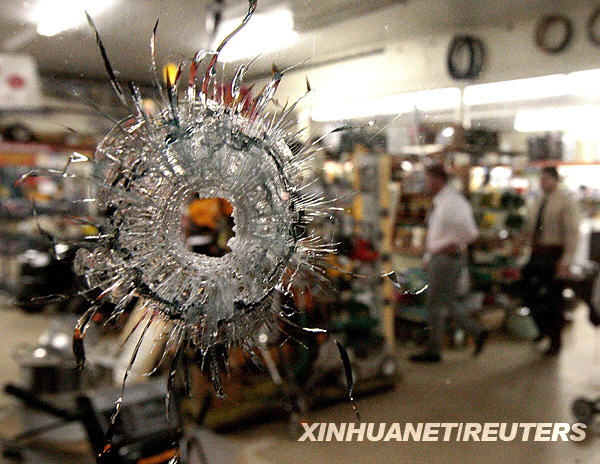 亞拉巴馬州安全部門說,麥克倫登在警察追擊下驅(qū)車逃往日內(nèi)瓦鎮(zhèn)一家金屬制品廠,沿途不斷開槍,射出大約30發(fā)子彈,其中一發(fā)子彈擊中日內(nèi)瓦警察局長弗蘭基·林賽。所幸,林賽當時身穿防彈衣,得以保住性命。