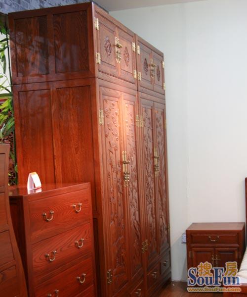百仁堂榆木臥房家具之大衣柜和床頭柜樣品展示