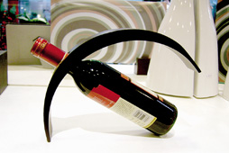 在由澳大利亞設計師Stevenrodis為首席設計師的家飾用品專賣店平米家居里,記者就發(fā)現(xiàn)了許多匠心獨具的新穎廚房家飾品。酒瓶用一個弧形的木制瓶托斜撐著,酒瓶與瓶托呈現(xiàn)出獨特的造型美。幾個面碗和水杯兩邊出現(xiàn)了古希臘戰(zhàn)士頭盔造型的邊兒,既是裝飾,又有防止燙手的功能。另一種面碗是木制的,碗邊上設計了擺放筷子的凹邊,正好放一雙筷子,特別適合單身貴族和青年情侶偶爾在家給自己做點面條時用。當然了,造型如此時尚的碗筷不吃飯時放在桌上也可以做裝飾品。另一個遠看像花瓶的容器,近看才發(fā)現(xiàn),原來是一個不銹鋼架子上面疊放著同樣式和同大小的咖啡杯,下面疊放著和咖啡杯相配的杯墊。這樣的設計既節(jié)省空間,造型又獨特,還可以做裝飾品,真是集功能性、裝飾性與藝術性于一體的設計作品。