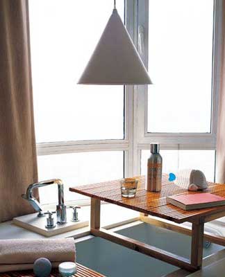 具備復(fù)合功能的家具是小戶型家庭更好的選擇——一件家具變成兩件甚至更多,自然可以有效節(jié)約空間。接著,陽(yáng)臺(tái)的拉門(mén)被毫不留情地拆除,將封閉陽(yáng)臺(tái)與室內(nèi)融為一體,多出的空間才使后來(lái)的觀景浴缸設(shè)計(jì)有了實(shí)現(xiàn)的可能。