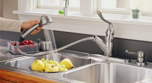 記者還看到市場(chǎng)上的一種抽拉式廚房龍頭,擁有柱狀出水和噴射出水兩種方式,在花灑頂部按鈕即可輕松實(shí)現(xiàn)轉(zhuǎn)換,清潔又方便,更有可抽拉的1.5米長(zhǎng)不銹鋼軟管,輕松達(dá)至您需要的地方,讓清潔成為樂(lè)趣。
