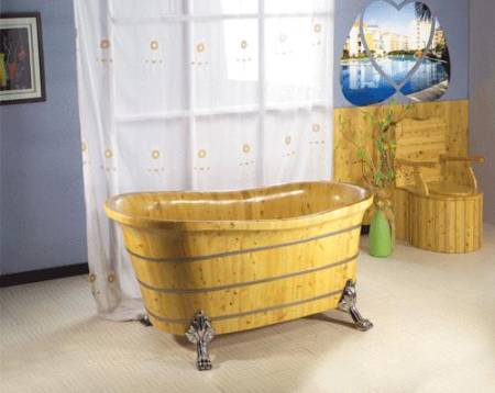 木質(zhì)浴桶與浴缸不同,它采用橢圓形的深型設(shè)計,其實木浴桶能夠為更多人采用的原因之一,在于它占地面積小,無須安裝,可以一步到位。不同年齡、不同身材的使用者,應(yīng)選擇不同造型的浴桶。消費者在選用浴桶的型號、款式時要注意衛(wèi)生間面積的大小以及門框的寬度。