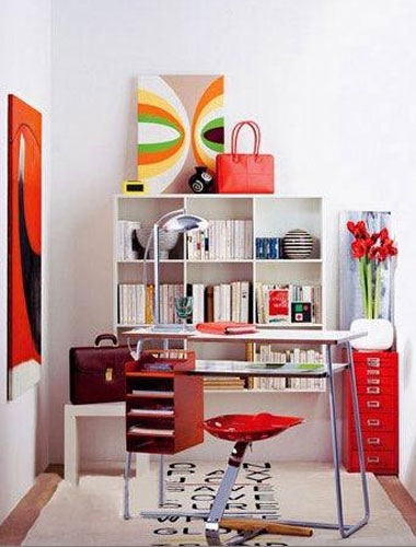 盡管多次告誡自己,不要把工作帶回家,可是,如果在家中突然獲得工作方面的好點(diǎn)子,最好還是馬上記錄下來(lái)。為了不影響家居的整體感,把角落布置成簡(jiǎn)潔實(shí)用的工作間是最好的方法。鮮艷的色彩能令空間顯得更加開(kāi)闊,同色系運(yùn)用效果整齊。結(jié)構(gòu)輕盈的書(shū)桌和書(shū)架,既保證功能,還能釋放更多空間。