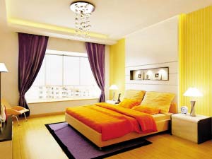 家具的色彩在整個(gè)房間色調(diào)中所占的地位很重要,對(duì)臥室內(nèi)的裝飾效果起著決定性作用,因此不能忽視。家具色彩一般既要符合個(gè)人愛(ài)好、更要注意與房間的大小、室內(nèi)光線的明暗相結(jié)合,并且要與墻、地面的色彩相協(xié)調(diào),但又不能太相近,不然沒(méi)有相互襯托,也不能產(chǎn)生良好的效果。對(duì)于較小的、光線差的房間,不宜選擇太冷的色調(diào);大房間、朝陽(yáng)的,可以有比較多的選擇。另外,應(yīng)考慮到不同面積不同功能的房間色彩可有不同,因而所產(chǎn)生的效果不同。如淺色家具(包括淺灰、淺米黃、淺褐色等)可使房間產(chǎn)生寧?kù)o、典雅、清幽的氣氛,且能擴(kuò)大空間感,使房間明亮爽潔;而中等深色家具(包括中黃色、橙色等)色彩較鮮艷,可使房間顯得活潑明快。此外,臥室光線不宜太強(qiáng),因?yàn)榇彩庆o息之所,強(qiáng)光會(huì)使人心境不寧,所以室內(nèi)最好用柔和的白熾燈來(lái)照明,而盡量少用日光燈。