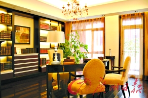 書房考究起來比較有學(xué)問。一般人書房內(nèi)有臺燈就夠了,因為看書不需要太多燈,但是如果只有臺燈的話,當(dāng)主人視力疲勞想轉(zhuǎn)移視線時就會出現(xiàn)問題,周圍沒有光線供眼睛休息,就容易出現(xiàn)眼花、頭暈的感覺,而這間書房燈飾的設(shè)計正好考慮到了這一點,而且還可以將屋內(nèi)的照片和畫卷照明,讓人倍感溫馨。