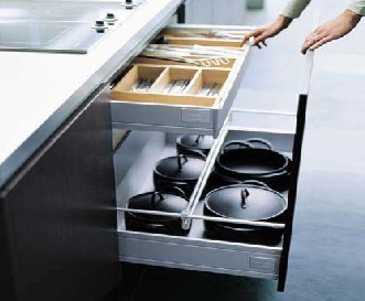 抽屜是廚房收藏功能得以實現(xiàn)的重要組成部分,導軌對于抽屜的使用性能、使用壽命都有著至關重要的影響。德國海蒂斯導軌帶上了阻尼裝置,使抽屜或柜門在即將閉合的時候(大約還有7毫米時),突然放緩了速度,從而阻止了門和柜體之間的直接、猛烈沖撞。同時,導軌滑動順暢、毫無阻塞感、滑動噪音小,也使抽屜開啟成為一種享受。