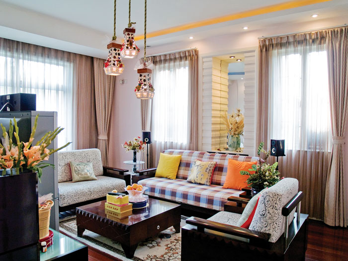 輔助照明泛指立燈、壁燈、臺燈等尺寸較小的燈具,能夠加強光線的層次感。壁燈大多安裝在門廳、走廊等部位,主要起引導作用。使用造型獨特的壁燈裝飾角落也會別有一番雅趣。立燈(落地燈)也是經(jīng)常使用的輔助照明,立燈直接向下投射,適合閱讀等需要精神集中的活動。如果是間接照明,可以交互搭配出不同的光線變化。使用立燈時需要考慮客廳的高度,如果過低,光線只能集中在局部區(qū)域,會使人感到光線過亮。立燈具有移動方便的優(yōu)點,能夠很好地營造出角落氣氛,并且十分實用。