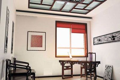 一般使用彩繪玻璃進(jìn)行天花裝飾,同時(shí)內(nèi)部可以安放燈源,增加美觀效果。多用于局部吊頂,要求追求一定的藝術(shù)效果。