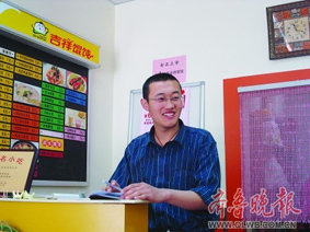 王欣欣2008年畢業(yè)于東北師大。大四那年,他曾經(jīng)闖蕩深圳找工作,后來考研沒有成功,便選擇在濟南開起一家餛飩店。當起小老板的王欣欣依然一臉學(xué)生氣。 吳金彪攝