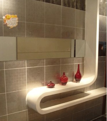 腰線磚多為印花磚,它的作用就像一根美麗的腰帶,環(huán)繞在墻磚中間,為單調的墻面增色,改變空間的氣氛。