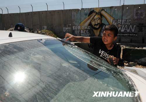 當世界上大多數(shù)兒童在享受幸福童年時,許多巴勒斯坦兒童卻輟學務工,有些孩子因為朝以色列軍車扔石頭而被逮捕,還有些孩子在沖突中受傷甚至死亡。由于安全局勢不穩(wěn)定等原因,大部分巴勒斯坦兒童過著貧困艱辛的生活。這是在約旦河西岸城鎮(zhèn)拉姆**,一名巴勒斯坦兒童在隔離墻附近給過往車輛擦車賺錢(5月28日攝)。新華社記者殷博古攝
