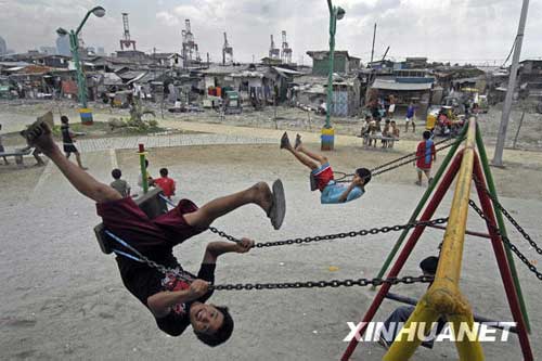2009年1月31日,在菲律賓首都馬尼拉一個貧民區(qū)的公園里,幾個孩子在蕩秋千。新華社發(fā)(伍婧丹編輯)