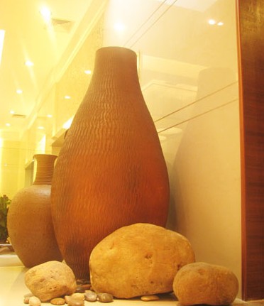 培訓(xùn)第一站是大堂的"古鎮(zhèn)新星"大型金色主題畫,該畫以佛山陶藝史專家霍流芝原作為范本,以宏宇·莎安娜玉石為材料,經(jīng)電腦雕刻而成,畫面古樸高雅,意蘊(yùn)雋永,生動(dòng)再現(xiàn)了佛山石灣古今制陶技術(shù)演變,濃縮古鎮(zhèn)陶業(yè)發(fā)展的滄桑巨變,反映出宏宇陶瓷是在千年陶都中成長(zhǎng)起來的一顆新星。