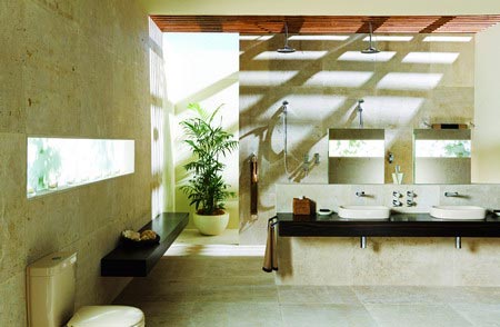 中戶型雙衛(wèi)面積一般都不大,其實可以當作兩個要求不同的小戶型衛(wèi)生間來處理。一般來說客衛(wèi)要與整個空間協(xié)調(diào),而且功能要簡潔,配置簡單的馬桶、面盆、家具即可,如果空間實在太小,甚至用一個臺面就行。很多人喜歡將洗衣間擺放在客衛(wèi),這是很不可取的,因為衛(wèi)生間會比較潮濕,這樣有可能會造成電線短路,從而產(chǎn)生危險,如果一定要在衛(wèi)生間里放洗衣機,要實行嚴格的干濕分離;主衛(wèi)可以實現(xiàn)更多個性化的裝飾,浴缸、潔身器這些提升舒適度的產(chǎn)品有條件最好裝修時就裝好,因為衛(wèi)生間是個改動起來很麻煩的空間,一定要提前規(guī)劃。另外有些人喜歡在衛(wèi)生間用防水涂料和壁紙,我建議一定要在干區(qū)使用。