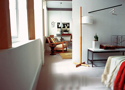 另一些重要的裝飾自然是照明設(shè)施了,由于在白天拍攝,我們幾乎忽略了這些分布在角落的燈具,它們更像是主人精心挑選的裝飾品,與大結(jié)構(gòu)和色調(diào)渾然一體。圓錐形吊燈與簡約的白色餐桌的搭配組成了一個完整的功能區(qū);與之相呼應(yīng)的是客廳沙發(fā)旁的落地?zé)?,巧妙地將三個簡單的圓錐體組合,為房間上下兩側(cè)同時提供照明;臥室的落地?zé)襞c墻面的裝飾物搭配,把這個角落設(shè)計成一件完整的藝術(shù)作品。
