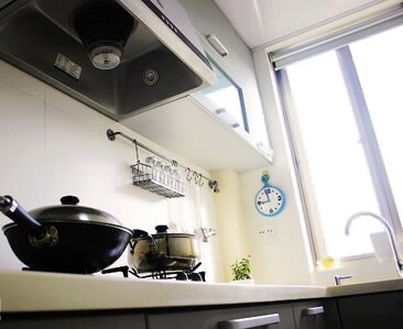整個(gè)廚房,里面鴿灰、淡銀、淺白充斥。畢竟是玩弄水和火的地方,應(yīng)該顯得多些的穩(wěn)重。整個(gè)房間,設(shè)備很少,寂寞的只能在陽光下發(fā)呆。只因不經(jīng)常在家做飯。