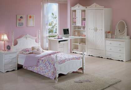 粉色墻體配上白色歐式風(fēng)格的兒童臥室家具,顯得氣質(zhì)又大方。
