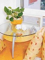 實(shí)用家具:?jiǎn)稳松嘲l(fā)加玻璃茶幾,不但可擺設(shè)盆栽,還可以用坐墊做擺設(shè)。