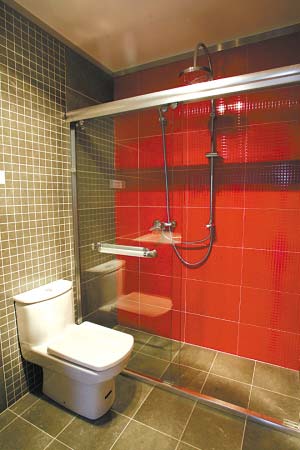 設(shè)計(jì)師用足了空間的每一處角落,將干濕區(qū)域整齊地分割開(kāi)。 ■ 案例1 制造溫暖,讓人開(kāi)門(mén)見(jiàn)紅 關(guān)鍵詞:“**與冷靜” 解讀 按照常理,衛(wèi)浴空間應(yīng)該是個(gè)讓人冷靜的地方,特別是在炎熱的夏季。但是進(jìn)入了秋冬季節(jié)后,再冷下去就不合時(shí)宜了,溫暖和火熱應(yīng)該是后面兩個(gè)季節(jié)最需要的。然而,在面積較小的衛(wèi)浴空間里,不可能擺太多的裝飾,空間的局限性成為最大障礙,如何在小面積的衛(wèi)浴空間里做到**與溫暖并存,是設(shè)計(jì)師需要考慮的問(wèn)題。