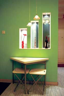 4、表面的“涂脂抹粉”從目前的建筑格局來(lái)講,并非所有的格局都很合理,所以切忌依賴(lài)房間原有 的格局,只做房間的“表面文章”,這樣只能給使用者帶來(lái)更多的不方便。從美學(xué)角度考慮,矩形的房間并不理想。