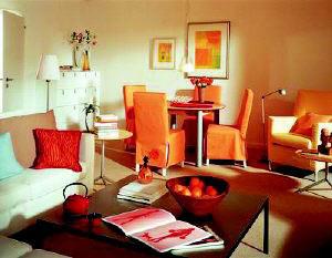 希望鮮艷而不張揚的橙色為家居注入時尚氣息,那就需要更多的橙色。壁畫、窗簾、家具、燈光都可“橙”現出都市人的成熟、熱情與智慧。
