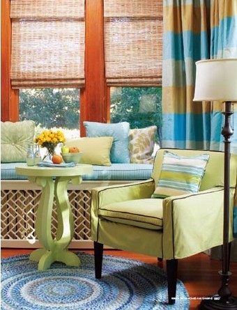 窗戶是采擷陽光最重要的元素,這個房間有很多窗戶,所以要好好控制光線。白色百葉窗顯得有點過時和太過死板 ,不太適合這個舒適的空間。