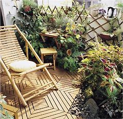 頂樓地面多為水泥地,感覺(jué)光禿禿的;露臺(tái)則多為磁磚材質(zhì),不用多加修飾。一般來(lái)說(shuō),要方便清理、維護(hù),最好盡量維持地面原貌,才能減少積水、臟污的機(jī)會(huì)。不過(guò)若真想擁有花園的整體感,倒是可利用拆組方便的鋪面材,如木板、石片,景觀用的小石子則不建議大面積鋪上。而墻面即使不掛盆栽,加上籬笆也能修飾整體景觀。