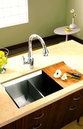 不銹鋼廚盆,獨有金屬的亮麗光澤,干凈整潔,不會破碎和斷裂,可選擇的造型多,重量輕,安裝方便。但其缺點是表面易形成劃痕,光澤與亮度無法長久保持,使用時噪音較大。