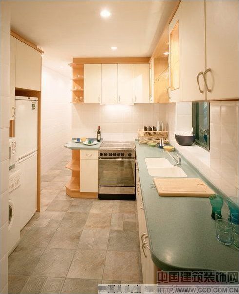 縮短走動(dòng)的距離使得拿取東西更加方便。在設(shè)計(jì)廚房時(shí)應(yīng)該考慮個(gè)人在廚房的工作習(xí)慣。常做飯并且喜歡使用配料的人,應(yīng)該設(shè)置敞開的格架,這樣各種器皿隨手可拿,不用經(jīng)常開關(guān)柜門。為了不使你的背部持續(xù)受壓,坐著工作是最理想的。在廚房中放一個(gè)高凳或站立時(shí)的依靠物,它能夠幫助你變換姿勢(shì),減輕腿和背部的負(fù)擔(dān)。一般情況,85-95厘米的工作高度是合理的。工作臺(tái)面的高度應(yīng)當(dāng)適合操作者的身高。在實(shí)際使用中,常常證明60厘米寬的臺(tái)面太窄。如果臺(tái)面寬度達(dá)到70厘米,就可以將電器放在壁龕里,而不必放在臺(tái)面上??梢酝ㄟ^(guò)降低工作臺(tái)面來(lái)增加吊柜的空間。