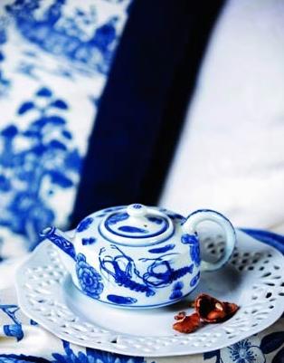 用青花圖案的茶壺搭配白色英式骨瓷茶盤(pán),正好調(diào)和了中式茶壺的端肅,加上古典青花圖案的餐巾,一個(gè)人的下午茶因此多了幾分自在與優(yōu)雅。