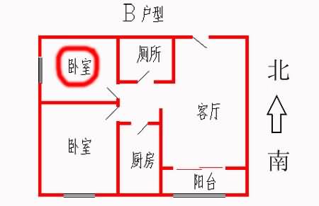 5.兩個臥室的位置都是非常好的。戶主或小孩、老人都適合居住,老人更適合住西北的臥室,因為這個臥室在“天醫(yī)”位,這個位置,如果老人住,延年益壽。